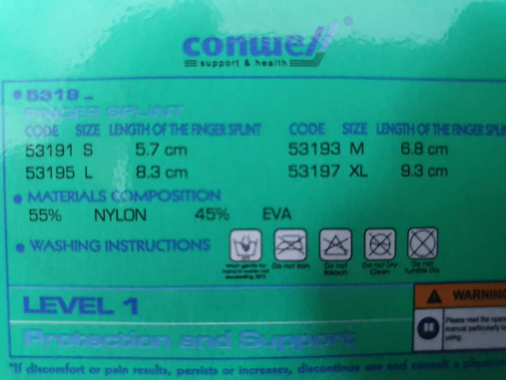 מקבע אצבע לשבר / סדק / הגנה של חברת conwell מגיע ב-4 מידות 60.00